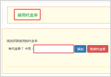 4、点击“使用代金券”,输入代金券卡号,